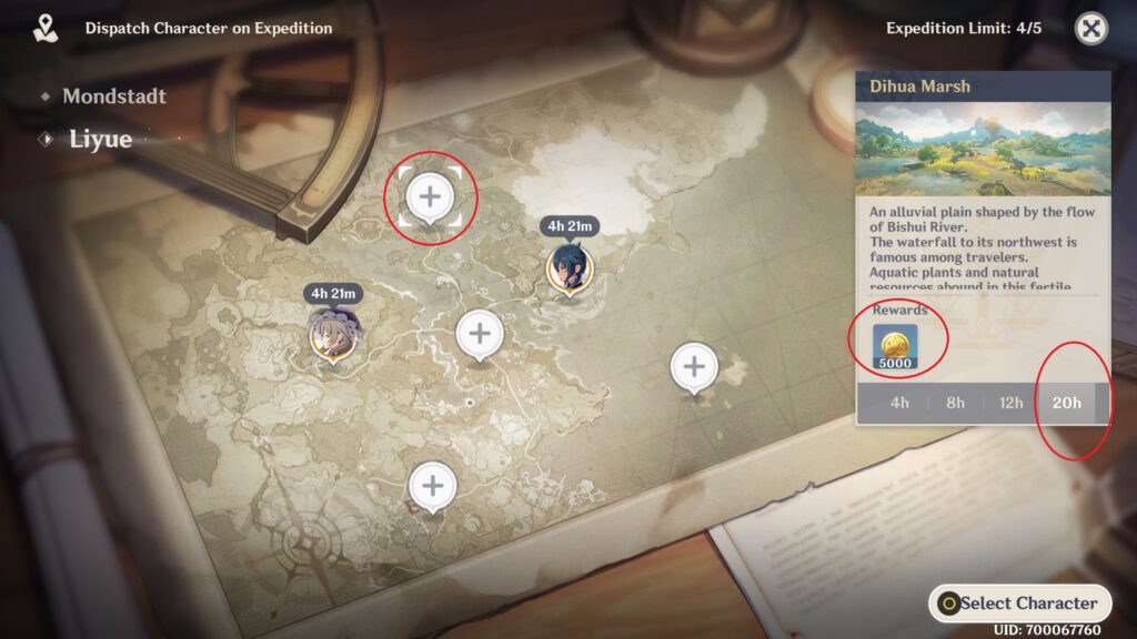 Minden nap kapsz 4 újabb küldetést, amelyek elvégzéséért kb 20.000-30.000 Mora-t kapsz.