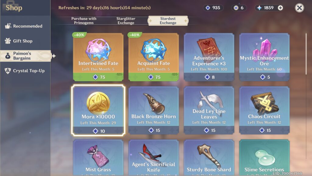 Váltsd át a Masterless Stardust – Mora-ra. 10 db/10.000 mora.