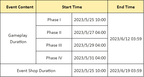 - 05. 25. 11:00:00 – 2023. 06. 12. 04:59:59