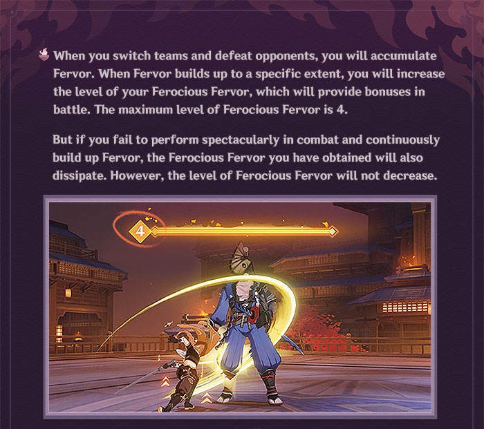 Amikor csapatot cserélsz, vagy legyőzöl egy ellenfelet, Fervort szerzel. Mikor a Fervor elér egy bizonyos mennyiséget, növelheted a Ferocius Fervorod szintjét, ami bónuszokat biztosít a harcban. A maximum elérhető Ferocius Fervor szint 4, de ha nem teljesítesz látványosan a harcban, és nem tudod folyamatosan növelni a Fervort, az a Ferocius Fervor, amit elértél eloszlik. Azonban a Ferocious Fervor szintje nem csökken.