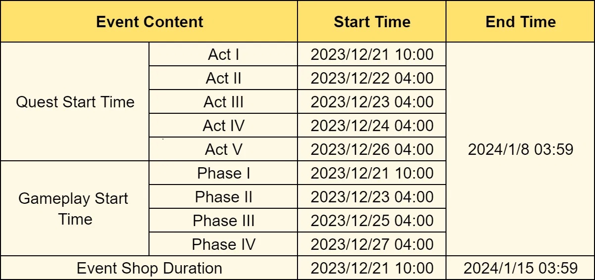 - Teljesítsd az esemény különféle játékmódjait, hogy Films for Funt szerezz, amelyet az Esemény Boltban Karakter Talent Anyagokra, Fegyver Ascension Anyagokra, Mystic Enhancement Ore-ra és Morára tudsz beváltani.