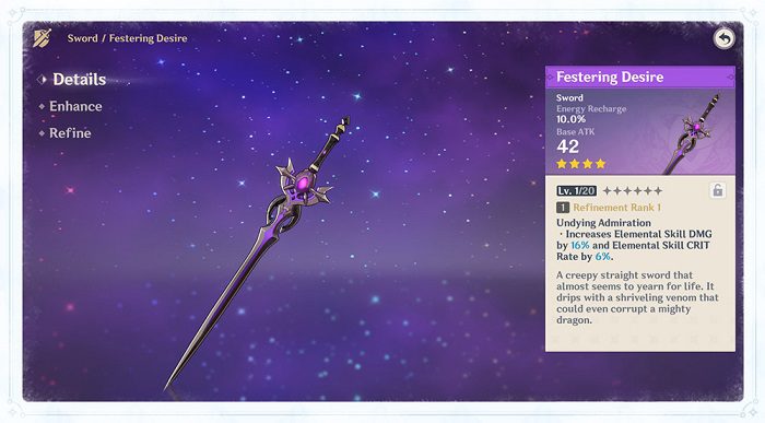Az esemény ideje alatt a Festering Desire 1,5× Enhancement EXP bónuszt kap, amikor szintet lép. Refine-old a fegyvert a Festering Dragon Marrow segítségével, hogy elérje az 5. Refinement szintet.