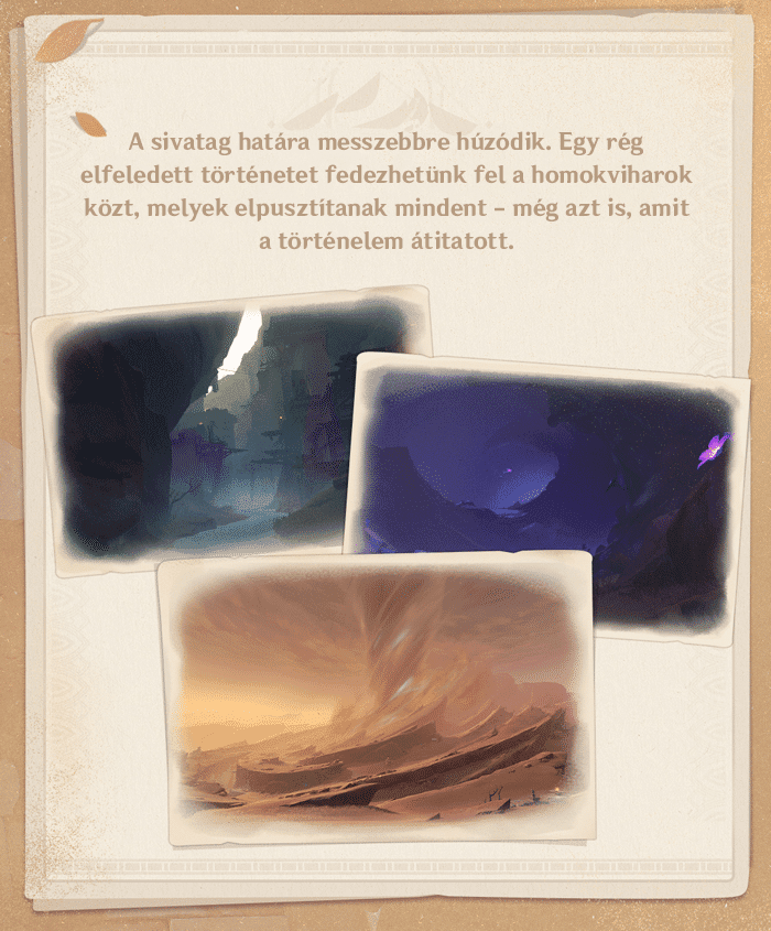 A Sumeru északi részén elhelyezkedő új terület, a Hadramaveth Sivatag hamarosan elérhetővé válik! Milyen ismeretlen tájak várnak ránk ezekben a handzsár alakú szakadékokban, amelyek keresztülszelik a sivatagot?